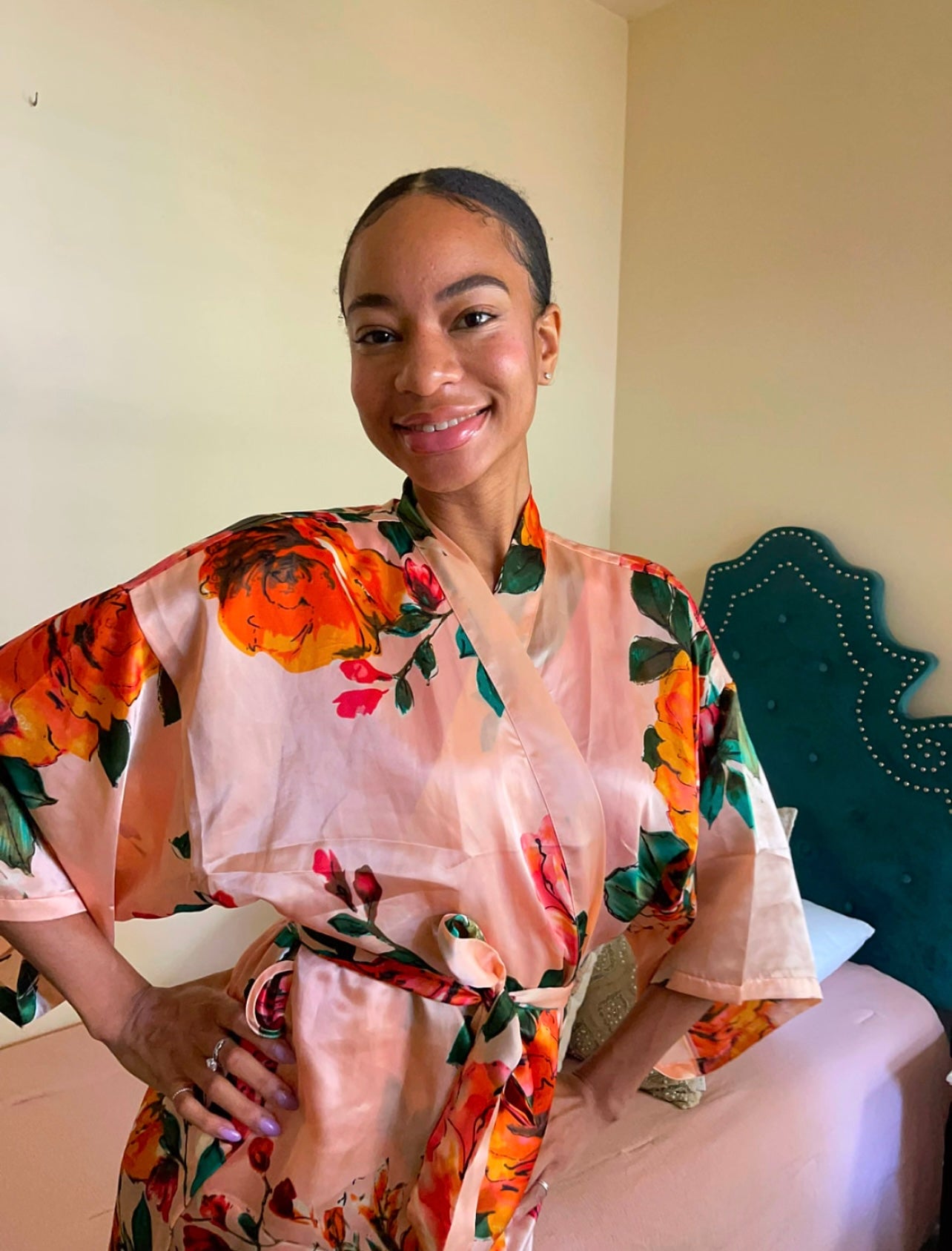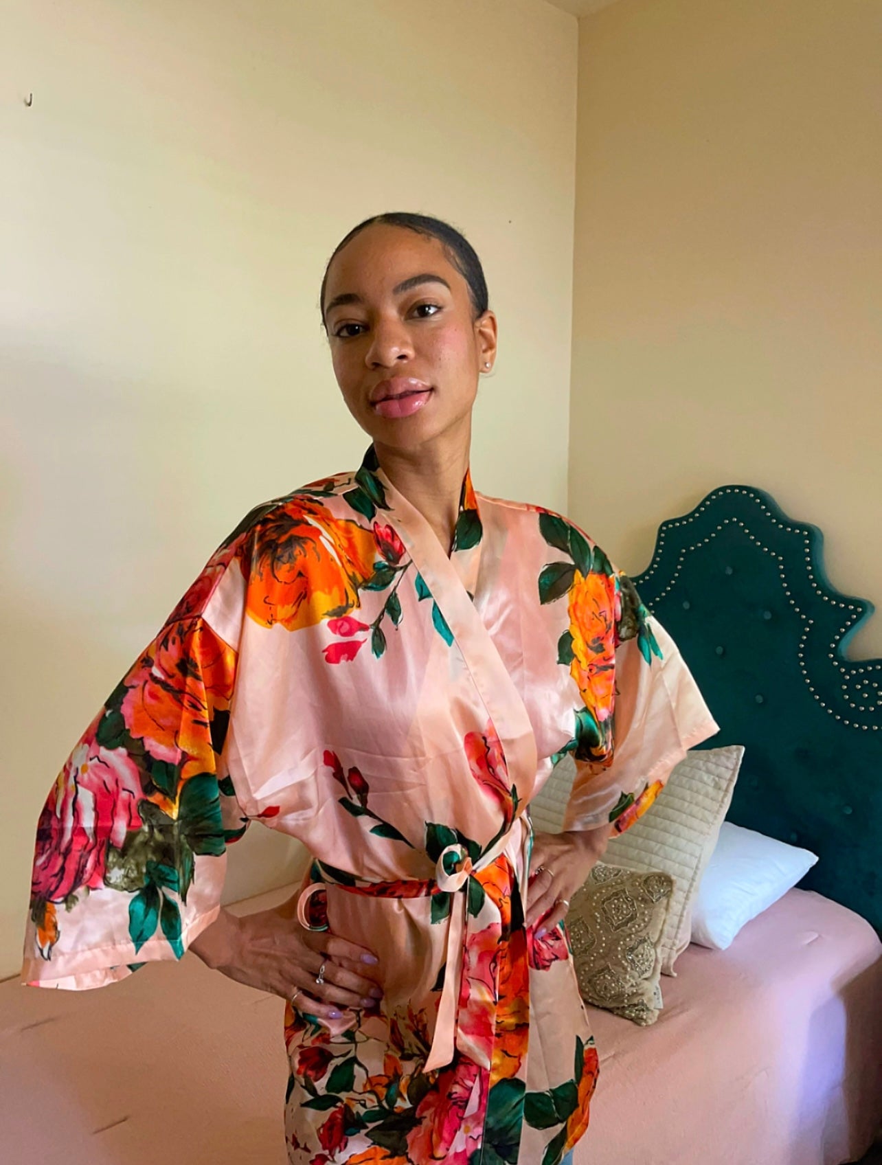 Thrive in grace, integrity, and favor as you show up in life in this gorgeous, champagne robe.